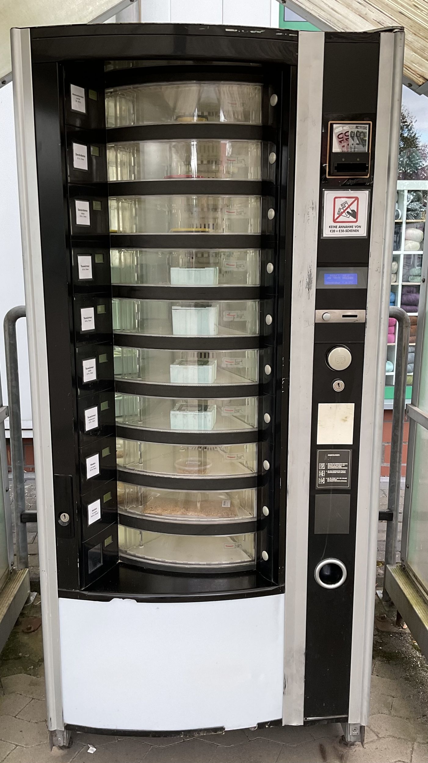 In unserem Verkaufsautomaten finden Sie: Maden, Bienenwachsmaden, Tauwürmer und Dendrobena. Der Automat steht Ihnen außerhalb unserer Geschäftszeiten jederzeit zur Verfügung. Wichtig: keine Kartenzahlung möglich. So sind Sie für Ihren nächsten Angelausflug bestens ausgestattet – wann immer Sie möchten!